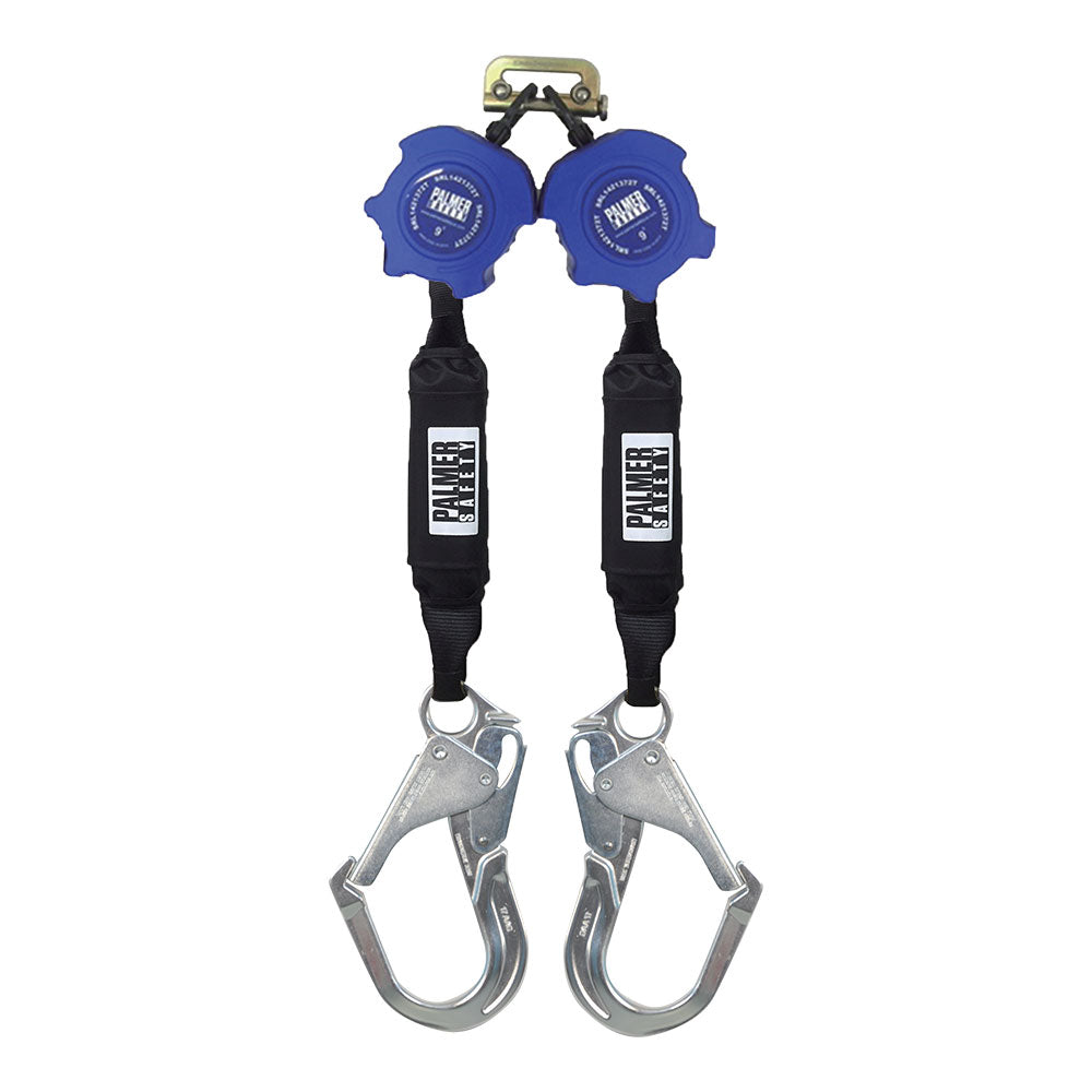 6ft. Twin Retractable web, light weight plastic housing, external shock-pack, 2¼" hook aluminum , ½" carabiner included. Min breaking strength 3000lbs. Rated 420lbs.Meets or Exceeds ANSI Z359.14-2014 Class A.